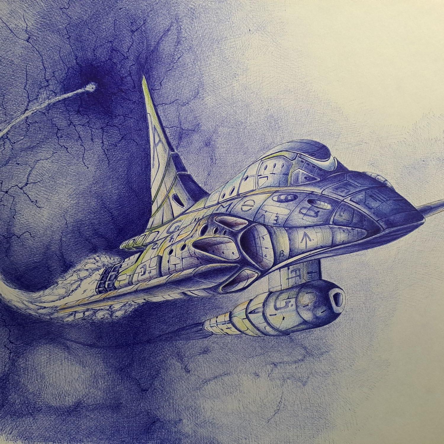 Chiaroscuri a Biro Bic + matite colrate, Carta da disegno, 2025