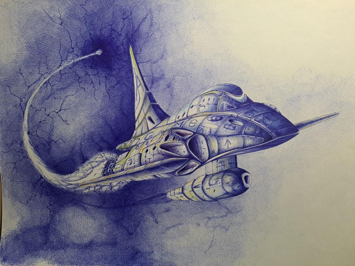 - Tecnica: Chiaroscuri a Biro Bic + matite colrate